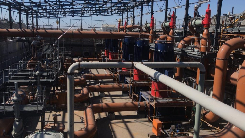 Pump station pipework at the OTMS Oil Tanking Facility.